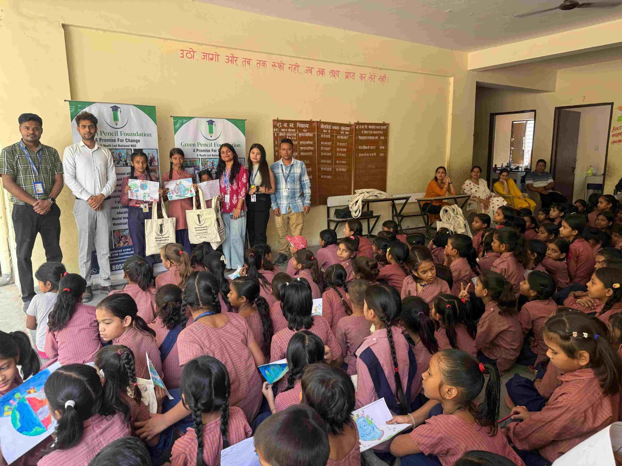 The Green Pencil Foundation, in collaboration with CSR partner One Point, One Solution, organized a special Environmental Awareness Session at the Government Girls Primary School in Mullahera, Gurugram. The initiative aimed to educate young students on sustainable living, plastic-free habits, and the importance of environmental stewardship.