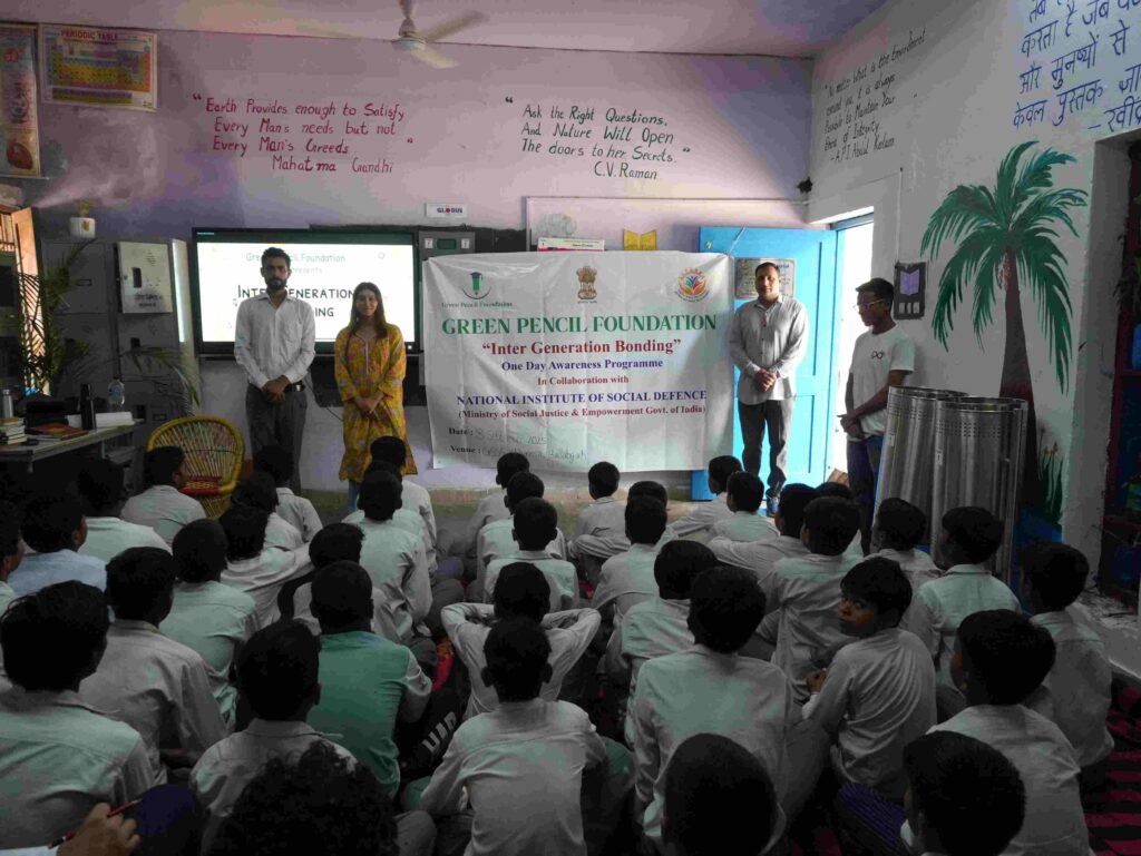 The Green Pencil Foundation, in collaboration with the National Institute of Social Defence (NISD) under the Ministry of Social Justice and Empowerment, Government of India, organised a one-day sensitisation programme at Government Senior Secondary School, Village Chhainsa, Ballabgarh, on September 18, 2025.