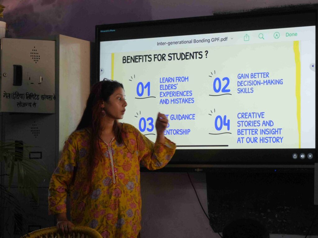 The session was attended by 70 students and facilitated by Ms. Himanshi Mehra, Mr. Sandy Khanda, and Mr. Aakash Mahato, who led engaging discussions on intergenerational bonding, empathy, and mutual understanding between youth and the elderly. The programme aimed to help students appreciate the value of traditional wisdom, familial relationships, and community care—key aspects of India’s social fabric often overlooked in modern, fast-paced lifestyles.