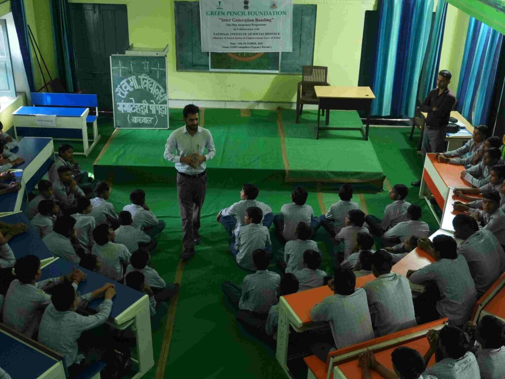 The Green Pencil Foundation, in collaboration with the National Institute of Social Defence (NISD) under the Ministry of Social Justice and Empowerment, organized a heartfelt awareness session on Intergenerational Bonding at Government Senior Secondary School, Village Popran, District Karnal.