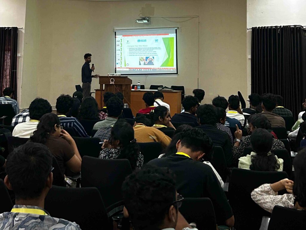 The session highlighted Kerala’s growing plastic pollution crisis, air quality concerns, and the urgent need for effective waste management and renewable energy solutions. Students actively engaged in discussions on adopting sustainable practices in daily life, learning about plastic segregation, eco-friendly alternatives, and responsible consumption.